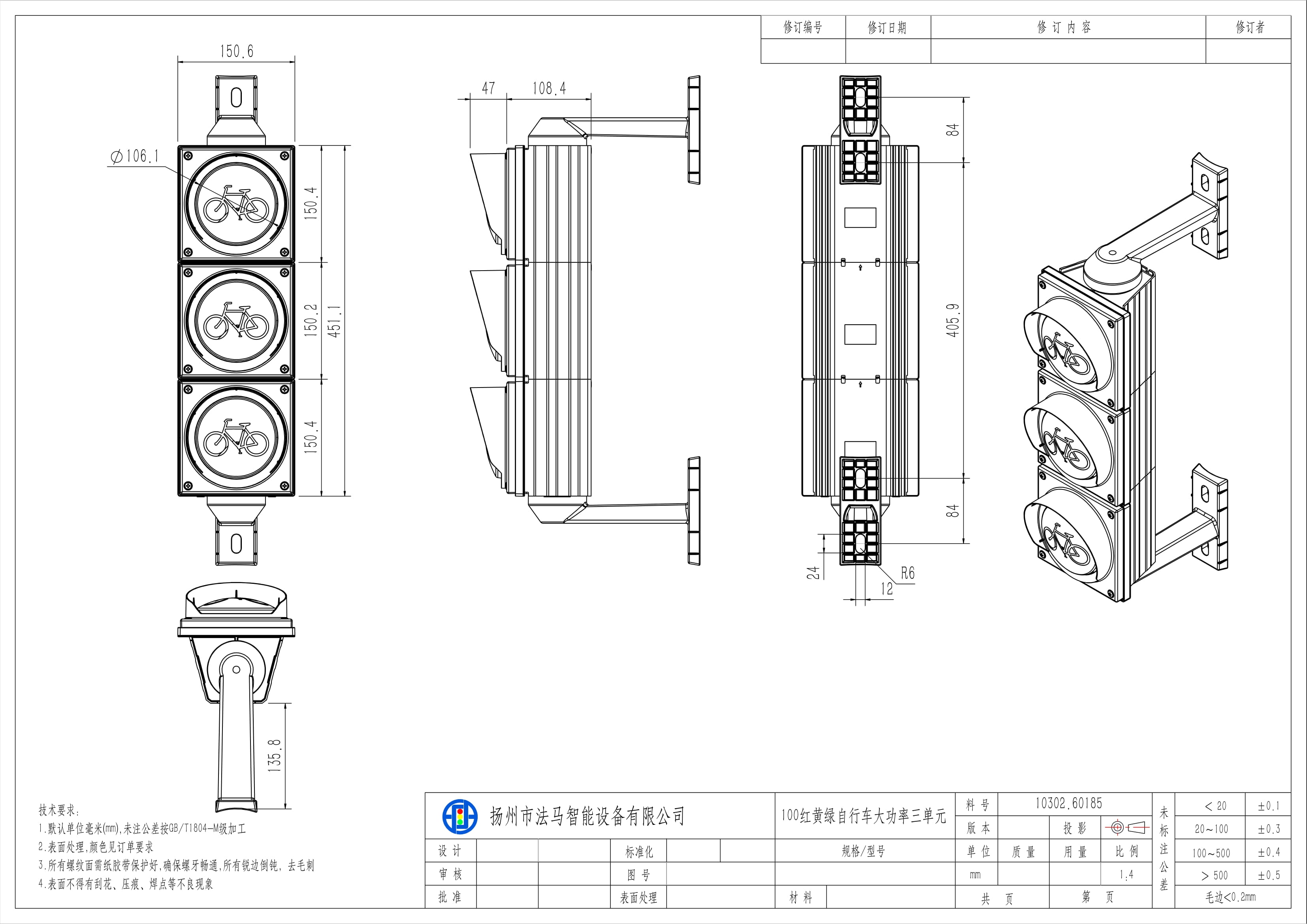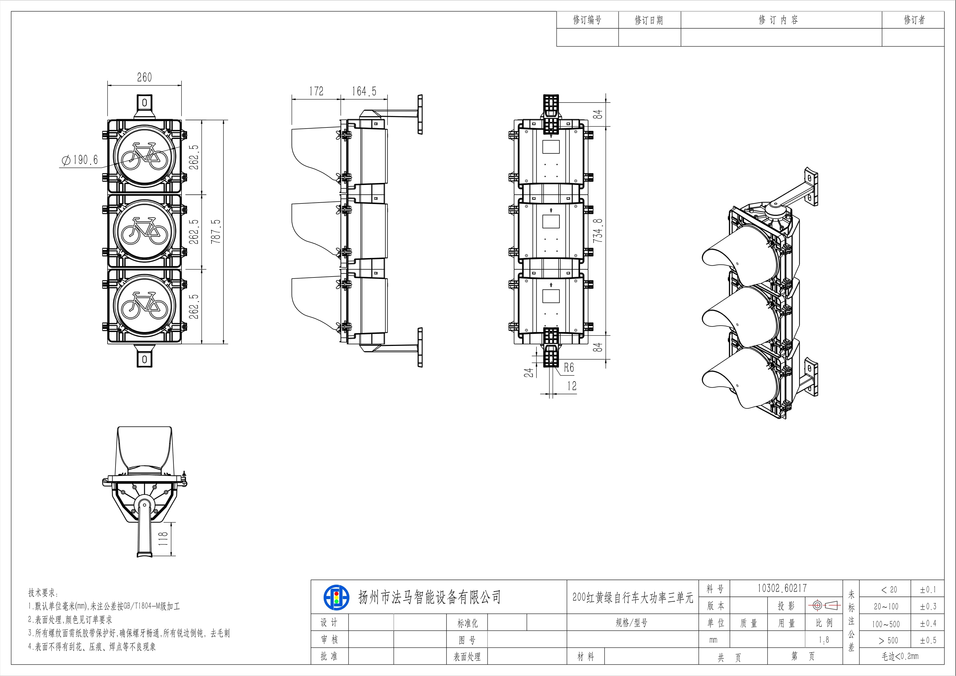Lampu Isyarat Basikal Fluks Tinggi ialah pemasangan tiga unit. Teras lampu terdiri daripada sumber cahaya bersaiz besar, sistem kanta optik tiga lapisan, modul kuasa, mangkuk lampu dan komponen pelesapan haba luaran. Mekanisme optik beroperasi melalui pemprosesan optik tiga lapisan untuk meningkatkan kecekapan bercahaya, meresap dan memfokus semula cahaya titik yang dipancarkan daripada sumber cahaya, dengan itu menjana keluaran cahaya permukaan yang seragam. Ia boleh digunakan untuk persimpangan terkawal isyarat lalu lintas yang ditetapkan untuk lorong basikal.